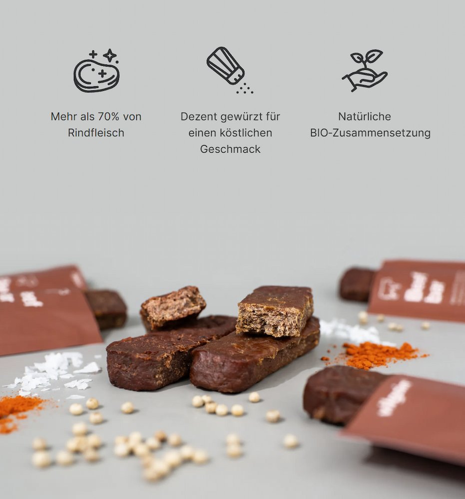 Würzige Riegel aus premium Grass‑fed Fleisch