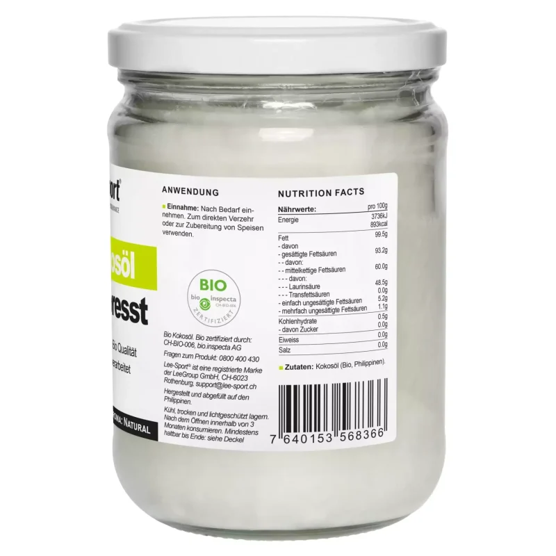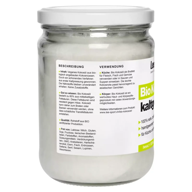 Kaltgepresstes Bio-Kokosöl wird oft als besonders rein und nährstoffreich angesehen und ist eine ausgezeichnete Wahl für gesundheitsbewusste Verbraucher.Die Gründe für die ausgezeichnete Qualität und Frische von Lee-Sport® Bio Kokosöl sind sorgfältige Handarbeit, innovative Technik und direkter Vertrieb. Im Detail sieht das so aus: