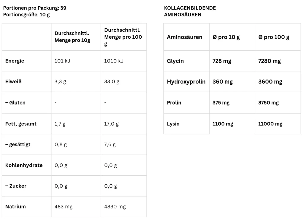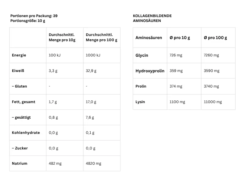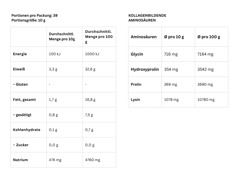 - Versorgt den Körper mit hochwertigem Kollagen, Aminosäuren & Proteinen