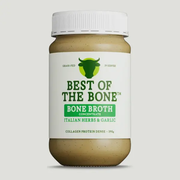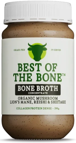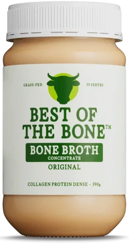 Knochenbrühen-Konzentrat ist ein reichhaltiges, collagenreiches Konzentrat, das durch langsames Auskochen von 100 % grasgefütterten Rinderknochen aus Australien und Neuseeland hergestellt wird.