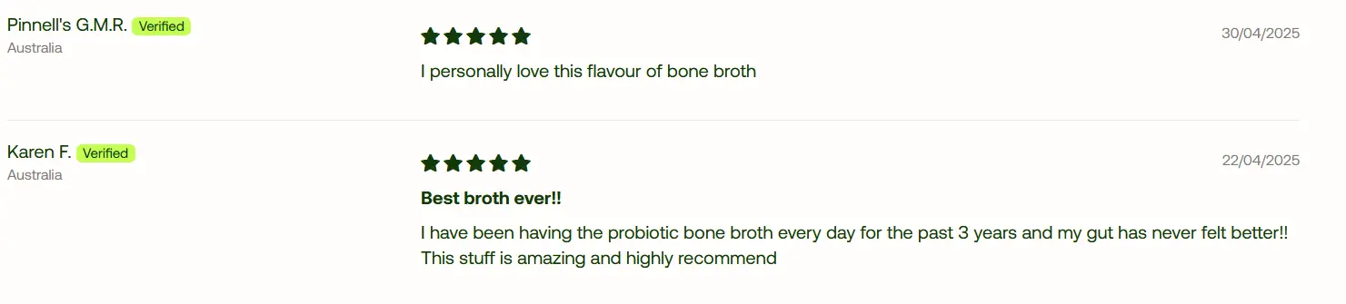 Das Ergebnis? Eine nährstoffdichte, löffelbare Brühe, vollgepackt mit Kollagen, Gelatine, Aminosäuren und wichtigen Mineralstoffen – zur Unterstützung von Darmgesundheit, Gelenken, Haut und allgemeiner Vitalität.